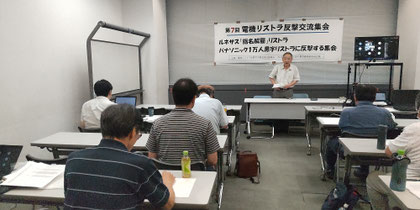 開会あいさつに電機労働者懇談会今井節生代表、連帯あいさつパナソニック革新懇岡邑洋介代表、基調報告ルネサス「指名解雇」リストラ闘争の取り組みと成果、電機・情報ユニオン成木彦朗委員長、基調報告パナソニック1万人黒字リストラ闘争にむけて電機・情報ユニオン長谷部副委員長、閉会あいさつ電機・情報ユニオン米田徳治特別執行委員が発言しました。